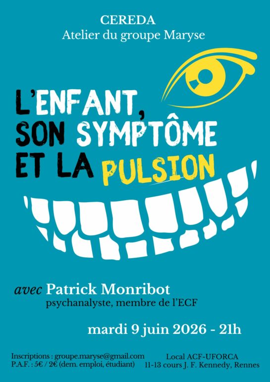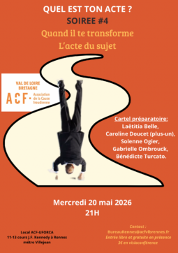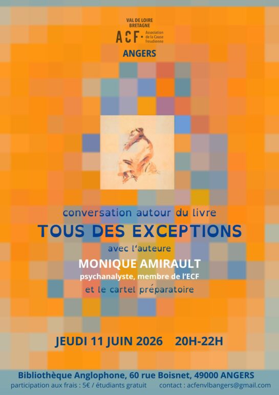 Le prochain Forum se tiendra à Nantes le samedi 10 octobre 2026, sous le titre : « Le secret, à l’heurt de la transparence ». Pour nous y conduire, nous découvrirons bientôt l’argument de Benoît Delarue, délégué régional de l’ACF en VLB. Une Newsletter, intitulée Phénix – pour des raisons encore gardées secrètes ! – nous accompagnera jusqu’au Forum afin de mettre au travail cette question d’une grande actualité.