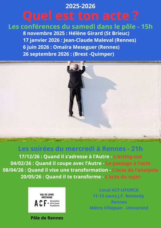 [1] Argument de la soirée du bureau de Rennes de l’ACF en VLB, « La voie du désir : l’énigme contre la norme », 1er juin 2022, disponible en ligne.