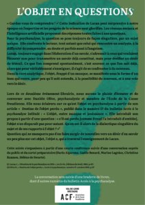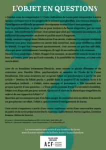 Evénement librairie – Conférence et Conversation avec Danielle Olive à partir du numéro d’Accès à la psychanalyse n°17 : L’objet, entre manque et jouissance.