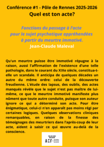 1ère conférence du cycle de l’année avec Jean-Claude Maleval, le samedi 17 janvier 2026 à Rennes