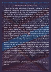 Conférence d’Hélène Girard, psychanalyste membre de l’ECF, le 8 novembre 2025 à Yffiniac :
