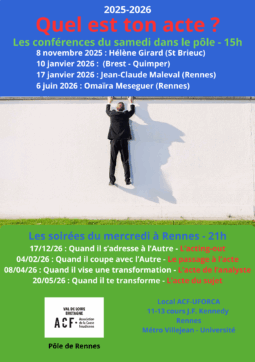 3ème conférence du cycle de l’année avec Sophie Gayard, psychanalyste membre de l’ECF.