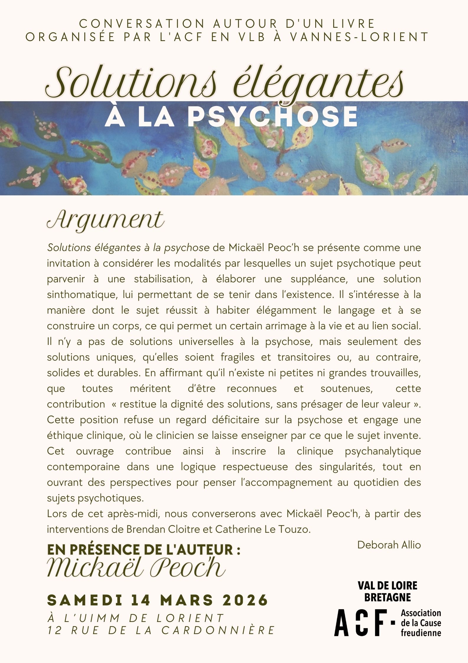 Conversation autour du livre : « Solutions élégantes à la psychose »
