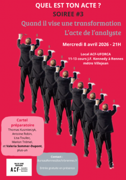 Conférence d’Hélène Girard, psychanalyste, membre de l’ECF Argument : Que l’on soit praticien en institution ou en libéral, la…