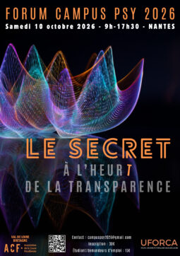 Le secret à l’heurt de la transparence FORUM CAMPUS PSY 2026 Argument A venir… Ville : Nantes Samedi 10 octobre 2026 / 9H00 - 17H30 Lire la suite