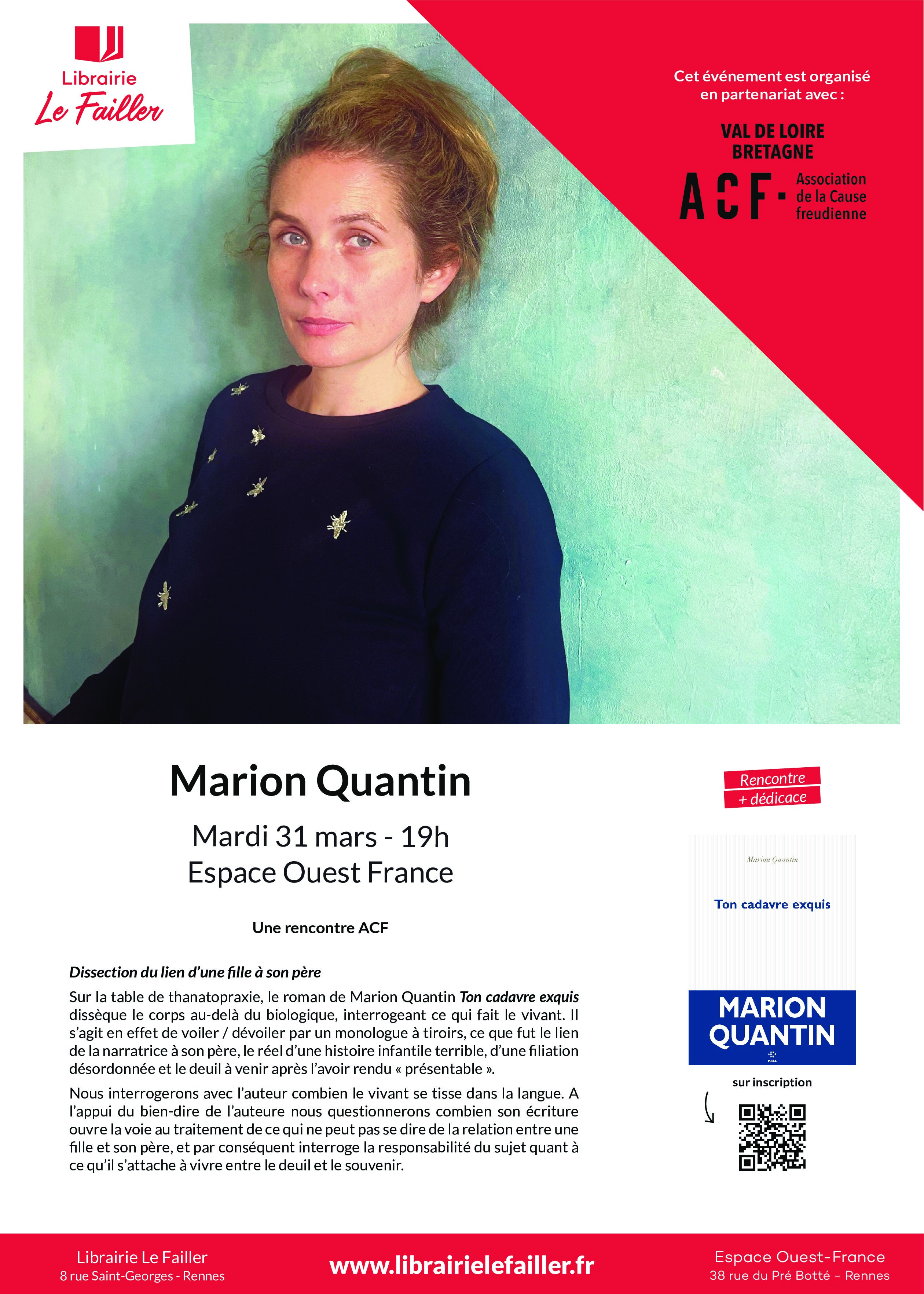 Soirée rencontre/débat avec l’écrivaine Marion Quantin pour la sortie de son livre Ton cadavre exquis le mardi 31 mars 2026…