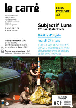 Rendez-vous théâtre et psychanalyse : L’Autre scène. À l’issue du spectacle les membres du cartel théâtre et psychanalyse proposent une…