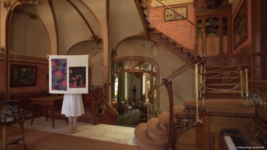 Plasticienne, sculptrice, vidéaste et performeuse, Marie-Ange Guilleminot vit et travaille à Paris. Elle propose ici, quatre photogrammes extraits de son film, « Vivre à la Maison Horta », co-produit avec le soutien du Musée Horta, de la fondation Thalie et de Bozar – Palais des Beaux-Arts, Bruxelles. Son travail détourne les objets de leur fonction, souvent des textiles et souligne avant tout le caractère poétique du geste créateur, mis en valeur par les matériaux, la lumière, les lieux.